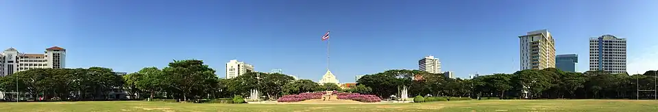 The university campus occupies an area of 637 rai (101.9 ha; 252 acres) in the downtown Pathum Wan District. It accounts for just over half of the 1,153 rai (184.5 ha; 456 acres) of land owned by the university, the rest of which is commercially developed by the university's Property Management Office or used by other institutions.