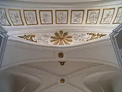 The crossing dome is made up of 8 oval windows 5 metres high, separated by vaulting and crowned with polygonal decoration. It also has four pendentives whose decoration is inspired by the theme of the Four Evangelists.[2]