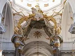 - ^ Saint Luke with his bull and Saint John the Evangelist with his eagle on the nave side; Saint Matthew with his angel and Saint Mark with his lion on the choir side.