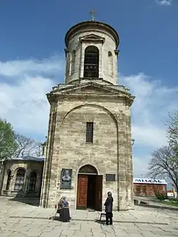 In the oldest area of the church, there is a "four-pillar cross-dome" with the facade formed by semicircular recesses built over cross-shaped columns.[7] The base of these columns are founded over marble columns which are provided with Corinthian capitals. It is inferred that this type of architectural feature existed on the basilicas built in the 6th century. Next to the western side of the church, there is a basilica which is dated between the 11th and 13th centuries.[7] A new chapel was added to the church in the 19th century, which was followed by enlarging the basilica with stone works, and with a belfry. The narthex, which existed in the old church, has been demolished. The building material used in the old part of the church is light Kerch limestone. The walls of the church have been built with bricks in successive layers, laid in alternate stages of four layers of masonry followed by four layers of red clay bricks which act against earthquake effects. However, in the new extensions made to the church this seismic proofed type of wall construction is not evident. The old part of the church has withstood the vagaries of weather conditions.[7] The interior of the church contains murals from the 13th–14th centuries.[10]