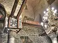 Three layers of frescoes inside the church have been preserved to this day. The earliest layer consists of three images of the martyrs of Edessa in the western arch dating to the mid-13th century. The second layer is the images in the narthex; it is stylistically influenced by the Italo-Cretan school from the time of the Council of Florence in the 1430s. The local bishop Ignatius took part in the council and may have propagated the idea of ecumenism. The inscriptions of the second layer are in Bulgarian and Greek. The latest layer of frescoes is that of the images in the southern gallery from the 16th century.