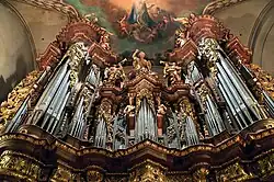 The original organ, dating from 1705, is the work of famous Czech organist Abraham Starka of Loket. Over the centuries the organ underwent changes. In 1754 the first reconstruction took place by František Katzer. Again this took place in 1906 by Josef Černý and Josef Rejna. Another intervention took place in 1941. The organ then was adapted for modern composition. The last major reconstruction was carried between 1981 and 1982 where Starka's original sounds were restored, for the most part with the original pipes, and preserved many interesting romantic colours. The present instrument has four manuals, 91 stops and 8,277 pipes.