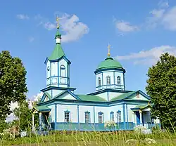 In 1758,[1] the first church was built in the village. During 1879, the present church was built opposite the old one. The old church was soon dismantled, but the site remained undeveloped. The church was closed in 1930. Worship services were resumed in the church during the German occupation in 1941, and the church had not been closed since. The church belonged to the Boryspil Eparchy of the Ukrainian Orthodox Church.[2]