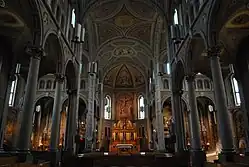The vault of the Gesù consists of five arches. It is adorned with frescoes by American painter Daniel Muller, who replicated work from the German school of Düsseldorf, depicting the life of Jesus.[1]