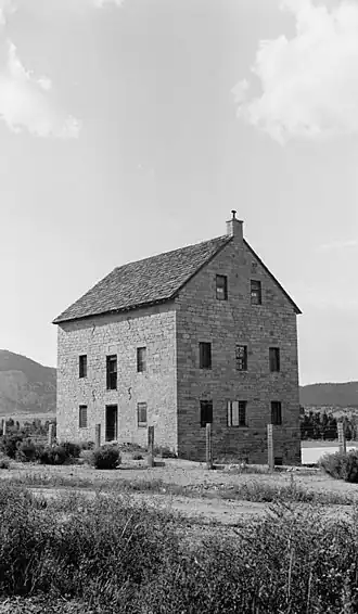 The Cimarron Historic District [2] is a historic district on the south side of Cimarron, New Mexico, United States. The district is located south of US Route 64 on the east and west sides of New Mexico Highway 21. In 1973, the district was added to the U.S. National Register of Historic Places.[2] According to the National Register, the district contains 1,940 acres (7.85 km2; 3.03 sq mi) and contains 6 significant buildings.