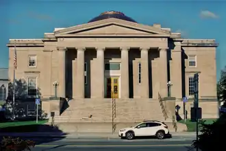Plattsburgh City Hall is an historic government building located at City Hall Place in Plattsburgh, Clinton County, New York. It was designed by architect John Russell Pope and constructed in 1917. It is a three-story, steel frame, limestone clad building in the Classical Revival style. It features a projecting entrance portico with six Doric order columns and a low central dome.[2]: 6–7