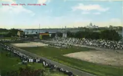 Postcard depicting Island Park ballfield and track field located south of the Market Street Bridge, c. 1910