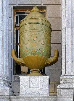 The bank began operating in a space leased in the Trust Building at 2228 Avenue E, but soon moved to another building at the intersection of Tremont and Market Streets, where it remained until 1920.[2] William Lewis Moody Jr. commissioned a new bank building which was constructed in 1919–20.[3][4]: 16 The building was a $200,000 structure built specifically for City National Bank at 2219 Avenue D (aka Market Street) in downtown Galveston. Its exterior has a pedimented portico with Corinthian columns and it has a barrel-vaulted interior.[3]