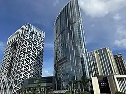 After a two year construction process,[17] The Boulevard, which includes 175,000 square feet (16,300 m2) of retail space surrounding the resort[18] on two levels,[2] was expanded in 2016.[19] The project, developed with DFS, expanded on the original 70 shops and added outlets along Estrada do Istmo, Cotai's main street.[17] In 2017 the Hard Rock Hotel was rebranded The Countdown Hotel,[20] although the Hard Rock Café Macau retained its original branding.[21] In May 2018, Crown Resorts ceased to be a co-owner of City of Dreams, and Crown Towers was rebranded to Nüwa.[20] The resort's fifth tower, Morpheus, opened in 2018 with design by Zaha Hadid Architects[22][23][24] and cuisine by Alain Ducasse.[25][26]