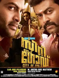 City of God is a 2011 Indian Malayalam-language crime thriller film directed by Lijo Jose Pellissery and written by Babu Janardhanan. It tells the story of Tamil migrant workers and a team of land mafia gangsters in the city of Kochi, Kerala. It stars Prithviraj Sukumaran, Indrajith Sukumaran, Rajeev Pillai, Rohini, Parvathy Thiruvothu, Rima Kallingal and Swetha Menon.