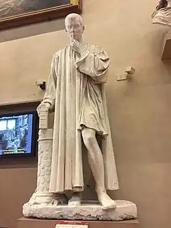 Niccolò Machiavelli was a political theorist and diplomat in the Republic of Florence (1469-1527).[15] His work diverged from the traditions of political theory during his time.[16] In his text The Prince, he argued that a prince may have to diverge from moral conduct in order to survive politically and protect his regime. Machiavelli's view that acquiring a state and maintaining it requires evil means has been seen as one of the more notable aspects of his thought.[17][18] Machiavelli's writings have been prominent in western political science and this has extended to the international relations field where his writings have been the source of liberal and realist debate.[19]