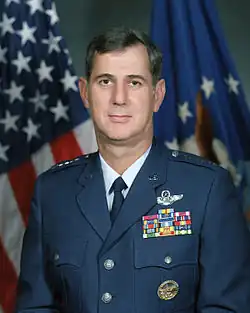 After completing undergraduate pilot training, he flew the C-124 Globemaster with the 17th Air Transport Squadron at Charleston AFB, South Carolina and saw combat in Vietnam with the 12th Special Operations Squadron. He later served as chief of operations and training for the 1402d Military Airlift Squadron at Andrews AFB, Maryland and commanded both the 438th Military Airlift Group at McGuire AFB, New Jersey and the 63d Military Airlift Wing at Norton AFB, California. His staff tours included tactical intelligence officer and division chief at Headquarters Tactical Air Command; Directorate of Doctrine and Concepts on the Air Staff at the Pentagon; deputy chief of staff for plans at Headquarters Military Airlift Command at Scott AFB, Illinois; director of budget at Air Force Headquarters and senior military assistant to the Deputy Secretary of Defense. He was named Comptroller of the Air Force in 1986 and retired in June, 1989.[3]