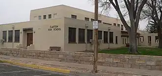 The Clayton Public Schools Historic District is a 7-acre (2.8 ha) historic district consisting of four blocks in southeast Clayton, New Mexico, centered on 6th and Cedar Sts. Also known as Clayton Public Schools-Campus No. 1, its oldest buildings were built in 1935. It includes work designed by Willard C. Kruger and other New Mexico architects in Pueblo Revival style and built by the Works Progress Administration. It was listed on the National Register of Historic Places in 1996; the listing included seven contributing buildings, four contributing structure and four other contributing sites.[1]