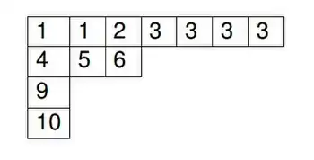 The tableaux is formed by stacking boxes side by side and up-down such that the states symmetrised with respect to all particles are given in a row and the states anti-symmetrised with respect to all particles lies in a single column. Following rules are followed while constructing the tableaux:[17]