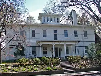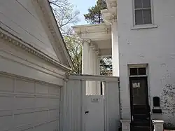 When the house was built there were single-story, two-bay wings on the east and west sides. They stopped short of the main wall on the south front and ended in short recessed porches. Sometime after 1905, the porches were eliminated and a second floor was added to both wings when the house was converted into apartments.[3]