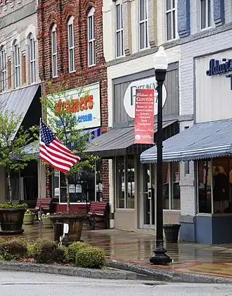 Clinton Commercial Historic District is a national historic district located at Clinton, Laurens County, South Carolina. It encompasses 37 contributing buildings in the central business district of Clinton. The district predominantly comprises late-19th and early-20th century commercial buildings, and also contains two bank buildings; a five-section warehouse; a former city hall; a large, industrial building; a Masonic temple; and a small, landscaped park.[2][3]