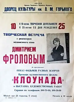 Clownery (Russian: КлоунАда, translit. Klounada) is a black-and-white and colour 1989 Soviet independent film directed by Dmitrii Frolov. It is based on Daniil Kharms novel Situations.