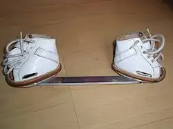 - Bracing: After successful correction is achieved through serial casting and Achilles tenotomy, the foot must be kept in a brace to prevent it from returning to the deformed position over the first few years of a child's life. The brace is made up of two shoes or boots that are connected to each other by a bar that is bent under the shoes at 10–15 degrees, or curved to create 10–15 degrees dorsiflexion. This device is also called a foot abduction brace (FAB) or more generally boots and bar (BnB). At first, the brace is worn full-time (23 hours per day) on both feet, regardless of whether the clubfoot affects one or two feet. After 3 months of 23/7 wear, the brace is worn less frequently by gradually reducing hours a couple at a time, every couple months so that hours are down to 12–14 per day at or around a year old. From this point on until at least 4–5 years, or even longer (6–9 years if needed), the brace is worn mostly while sleeping at night and during naps (12–14 hours per day). Bracing is essential in preventing recurrence of the deformity and is a major determinant of a child's long-term outcome.[36]