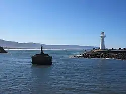 The shallowness of the entrance to the Hunter River continued to be a limitation on shipping into the 1920s[51] and a hazard during bad weather.[52] Work continued to improve the river mouth, during the 1930s, culminating in the excavation of a deep channel 600 feet wide, with 27 feet of water depth, effectively removing the rock bar at the river's mouth.[53][54] The improvements to the river entrance were a major engineering project for their time and a paper on the work won a Telford Premium award from the Institution of Civil Engineers for Percy Allan in 1921.[55]