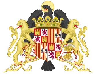 | Shield | Quarterly: Castile, León, Aragon, and Navarre; enté en point: Granada; inescutcheon Bourbon (Anjou Branch) |