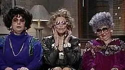 Near the end of the sketch, the women compared Streisand to "buttah" – and suddenly, a voice announced, "All this talk about food, I'm getting hungry, girls." It was Streisand herself in a surprise appearance; none of the actors had any idea that she was to appear. All three managed to remain in character as the audience went wild. (Myers as Richman screamed, "I can die now! That's all the time we have for this week; I have to go and die now!") The real Richman, sitting in the audience that night to watch her then son-in-law lampoon her, has acknowledged having been "tickled to death" at that particular moment, as Streisand is one of her actual heroes as well.