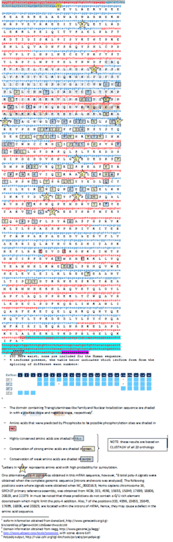 • Nuclear localization sequence with a Score of 4 in the amino acids 265–279. The amino acid sequence for this region is: