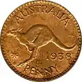 Portrait of King George VI. Designed by Thomas H. Paget. Kangaroo facing left, "AUSTRALIA" above and "PENNY" below, date above denomination. Designed by George Kruger Gray. 1938 1938–1952