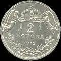 2 K | 27.0 mm | 2.0 mm | 10.0 g | "FERENCZ JÓZSEF I.K.A.CS. ÉS M.H.S.D.O.AP.KIR.", I. Ferenc József, mintmark | ||||