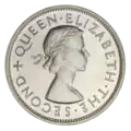 Coronation crown | 75% copper, 25% nickel | The initials EiiR of Queen Elizabeth II, with Royal Crown and whakairo carving, surrounded by the four stars of the Southern Cross. | Robert M. Conly | 257,000 | 1953 | ||||