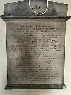 This article incorporates text from a publication now in the public domain: Stephens, Henry Morse (1886). "Campbell, Colin (1776-1847)". In Stephen, Leslie (ed.). Dictionary of National Biography. Vol. 8. London: Smith, Elder & Co. pp. 350–351. Endnotes:
