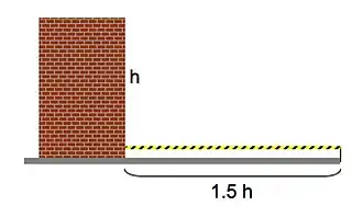 Collapse zones are traditionally established by a commanding officer. The collapse zone itself should be as wide as the structure and as tall, plus half the height. The reason for this increase in height is that the worst-case scenario (and the most common), a 90° Angle Collapse, must be assumed. A collapse zone should be established with barricade tape and should be enforced if necessary.