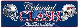 In August 2010, the matchup was branded as the "Colonial Clash", coincident with an arrangement to have the game played at Gillette Stadium in Foxborough, Massachusetts, during the 2010 and 2011 seasons.[4] The 2010 matchup, a 39–13 win by New Hampshire,[5] was the first college football game played at Gillette,[6] the home stadium of the NFL's New England Patriots. The 2011 game, the second (and to date, most recent) playing under the Colonial Clash branding, was also won by UNH, 27–21.[7]