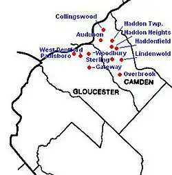 1. ^ Friedman, Josh. "Gloucester, a founding member of the Tri-County Conference, joins the Colonial Conference", Courier-Post, June 19, 2020. Accessed November 18, 2020. "Gloucester High School is leaving the Tri-County Conference after nearly a century in the organization. Gloucester, a founding member of the TCC in 1928, has been accepted into the Colonial Conference, taking the place of Overbrook, which is moving back to the TCC after leaving in 2008.... The move wasn’t supposed to occur until 2021, but because Overbrook and Gloucester are essentially switching places, both conferences agreed it made more sense to expedite the process."