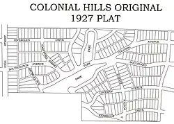 Colonial Hills was constructed in the early 1940s, but plans to build a subdivision there date to the great real estate boom of the 1920s. It took the involvement of the federal government and the demands for war housing to move the project into reality.