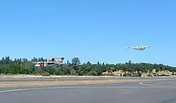 The California Department of Forestry and Fire Protection (CAL FIRE) operates an aerial firefighting air attack base at the airport with five aircraft based at the airfield. The typical complement of aircraft is one Rockwell OV-10 tactical (spotter) airplane, two Grumman S-2T air tankers, and one Sikorsky S-70i helicopter.[2] The base also hosts a helitack crew, a team of wildland firefighters who are transported by helicopter to fires. In addition to the firefighting mission, the helicopter is also equipped with a hoist for search and rescue missions. The Columbia Air Attack Base has facilities for refilling water and retardant on up to six firefighting aircraft, on rotation.[3]
