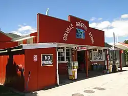 Colville township grew following the construction of a general store with a motor garage alongside.[10] This was built by Richard (Dick) Goudie, a local man whose grandparents had settled in Cabbage Bay. Dick Goudie later ran a taxi service from the town, being the first to drive a motor vehicle across the new bridge at Papa Aroha which opened up the northern peninsula from Coromandel. Fossicking for semi-precious stones such as carnelian and for kauri gum are popular activities among tourists visiting the town.[11]