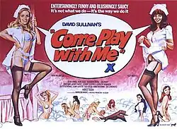 Come Play with Me is a 1977 British softcore pornographic film, starring Mary Millington and directed by George Harrison Marks. Its cast list contains many well-known British character actors who were not previously known for appearing in such films. The film is regarded by many as the most successful of the British sex comedies of the 1970s.[1] It ran continuously at the Moulin Cinema in Great Windmill Street, Soho, London for 201 weeks, from April 1977 to March 1981,[2][3] which is listed in the Guinness Book Of World Records as the longest-running screening in Britain. A blue plaque on the former cinema's site commemorates this.[4]
