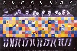 Commissar (Russian: Комиссар, translit. Komissar) is a 1967 Soviet film directed by Aleksandr Askoldov based on one of Vasily Grossman's first short stories, "In the Town of Berdychev" (В городе Бердичеве).[1] Berdychev is centrally located in the north of Ukraine. The action takes place during the Russian Civil War (1918–22), when the Red Army, White Army, Polish and Austrian contingents were battling for territory. Of equal importance is the fact that in Berdychev, at that time, the Yiddish language was officially instated and, from 1924, it had a Ukrainian court of law conducting its affairs in Yiddish.[2] The plot is based upon an intimate intersection of revolutionary and Jewish cultural manners and ideals. The main characters were played by two People's Artists of the USSR, Rolan Bykov and Nonna Mordyukova. It was made at Gorky Film Studio.