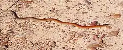 The scaly-foot is snake-like in appearance, up to 80 cm in length with a noticeable "keel" or ridge on the top. Variable in colours and pattern, it occasionally is grey with black spots or[1] sometimes coppery brown with a grey tail. Other patterns and variations occur. Prominent limb flaps may be seen on close inspection, hence the name "scaly-foot".
