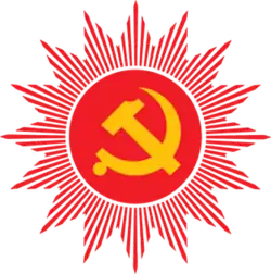 The election symbol of CPN (UML) is the sun which is also present in the party logo.[95] The hammer and sickle, a common symbol of communism, is also used in the party flag and logo. The party constitution determines that a golden hammer and sickle inside a red sun is the party's logo.[96]