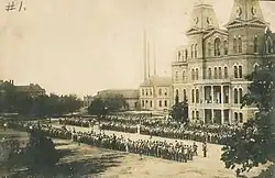 Through the first four administrations there were overtures to reduce the military aspect of Texas A&M. The first president, Thomas S. Gathright, was not a strong advocate and often had differences with Morris.[5][8] James faced criticisms of the regimen from the state legislature,[16] and Dinwiddie faced the pressures of strong competition from the newly formed University of Texas at Austin.[5]