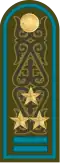 13. ^ "Қазақстан Республикасының Қарулы Күштері, басқа да әскерлері мен әскери құралымдары әскери қызметшілерінің әскери киім нысаны және айырым белгілері туралы". adilet.zan.kz (in Kazakh). Ministry of Justice (Kazakhstan). 25 August 2011. Retrieved 29 May 2021.