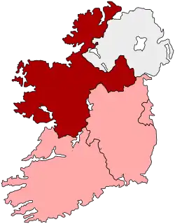 The constituency was created in 1979 for the first direct elections to the European Parliament. It comprised the counties of Galway, Leitrim, Mayo, Roscommon and Sligo from the historic province of Connacht together with the Ulster counties of Cavan, Donegal, and Monaghan.[2] It was abolished under the European Parliament Elections (Amendment) Act 2004 and succeeded by the new North-West constituency.[3]
