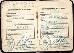In 1955, there was a break in ideology within the Armed Forces, known as the division between the "Blue and Reds", which lasted until 1963, in which conscripts were aligned according to orders from their superiors.[19][20][21] In 1978, conscript soldiers were deployed along the border with Chile in Operation Soberanía.