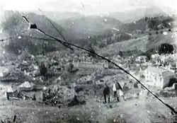 - Collodion glass plate negative: This process was invented by the Englishman Frederick Scott Archer in 1851. While the first process to take advantage of glass plates was the albumen print method, it was quite laborious and was quickly surpassed by the collodion glass plate negative in common use.[3] The collodion photographic process was a wet plate process, which meant that the glass plate itself had to be wet while it was exposed and throughout processing. This required a portable darkroom to be taken wherever a photographer went, in order to produce a negative image successfully. During the process, the collodion emulsion was poured onto a glass plate before being exposed. The glass plate was then developed, fixed, washed, and protected with a varnish.[1] Collodion is cotton dissolved in nitric acid. Because collodion was both complex and dangerous to produce, it was often purchased by the photographer. Once dissolved, iodide was added. Over time, bromide was added to help the image be more sensitive to light. Sometimes albumen (made of egg whites) was used to help the collodion stick to the glass plate. Pyrogallic Acid or ferrous sulfate was often used to develop the latent image, then sodium thiosulfate (also known as hypo) or potassium cyanide was used to fix the image.[4]