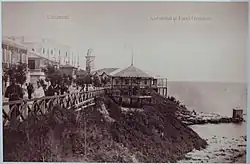 The first version of the Constanța Casino was built with a wood frame in 1880 and was named Cazin or Kursaal ("spa hall" in German).[3] It was the first Romanian building to be constructed on the shore of the Black Sea shortly after Northern Dobruja came under Romanian administration as a result of the Russo-Turkish War (1877–1878) and the Romanian War of Independence.