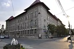The school building, inaugurated in 1899,[1] is listed as a historic monument by Romania's Ministry of Culture and Religious Affairs.[2] The upper story, begun in 1924, was completed in 1956.[1]