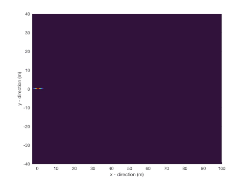An example of results of solving the drift diffusion equation is shown on the right. When light shines on the center of semiconductor, carriers are generated in the middle and diffuse towards two ends. The drift–diffusion equation is solved in this structure and electron density distribution is displayed in the figure. One can see the gradient of carrier from center towards two ends.