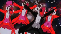 Coonskin uses a variety of racist caricatures from blackface minstrelsy and darky iconography, including stereotypes featured in Hollywood films and cartoons.[4] In the book That's Blaxploitation! Roots of the Baadasssss 'Tude (Rated X by an All-Whyte Jury), Darius James writes that "Bakshi pukes the iconographic bile of a racist culture back in its stupid, bloated face, wipes his chin and smiles Dirty Harry style. [...] He subverts the context of Hollywood's entire catalogue of racist black iconography through a series of swift cross-edits of original and appropriated footage."[4] The film also features equally exaggerated portrayals of white Southerners, Italians, and homosexuals.[4] The depiction of Jewish characters stems from stereotypes portrayed in Nazi propaganda, including The Eternal Jew.[8]