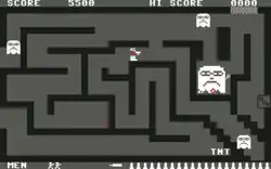 There are many diamonds to collect which are on many levels of the Acme Diamond Company building as well as the mine. Police enter the building but not the mine where the only enemies are ghosts. The player may also enter the police station (on some versions) and free fellow robbers.